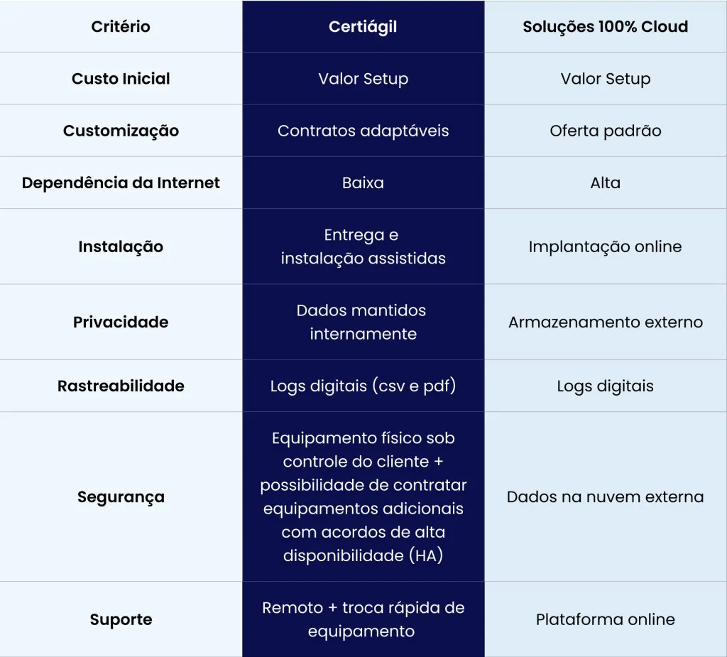 *Comparação baseada em critérios técnicos e operacionais disponíveis publicamente.